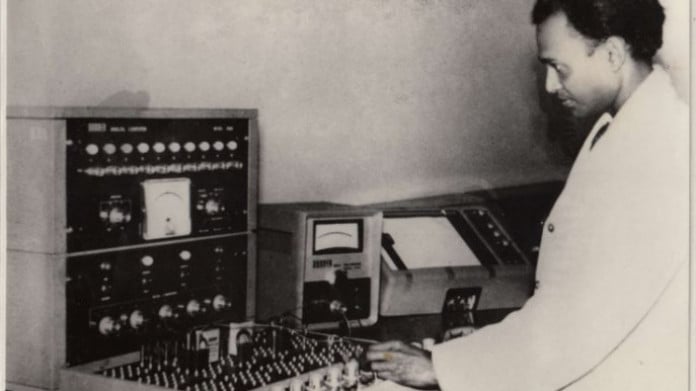 ১৩) প্রথম বাংলাদেশি রেডিও উপস্থাপকের স্টুডিও ছবি (১৯৪৮)