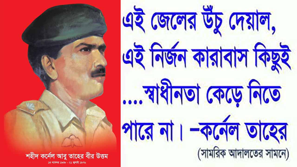 ঢাকা, ৭ এপ্রিল ২০২৬: বাংলাদেশের স্বাধীনতা যুদ্ধের ইতিহাসে ‘বীর উত্তম’ খেতাবপ্রাপ্ত সেক্টর কমান্ডার কর্নেল আবু তাহের কেবল একজন সমরনায়ক ছিলেন না, তিনি ছিলেন একজন রাজনৈতিক দার্শনিক। তাঁর জীবন এবং ১৯৭৬ সালের ২১শে জুলাইয়ের সেই বিতর্কিত ফাঁসি—বাংলাদেশের ইতিহাসের এক বিশাল ক্ষত। আজ আমরা বিশ্লেষণ করব কেন তাহেরকে ‘বাংলার চে গুয়েভারা’ বলা হয় এবং কেন তাঁর বিচারকে পরবর্তীতে উচ্চ আদালত ‘ঠাণ্ডা মাথার খুন’ হিসেবে অভিহিত করেছে।